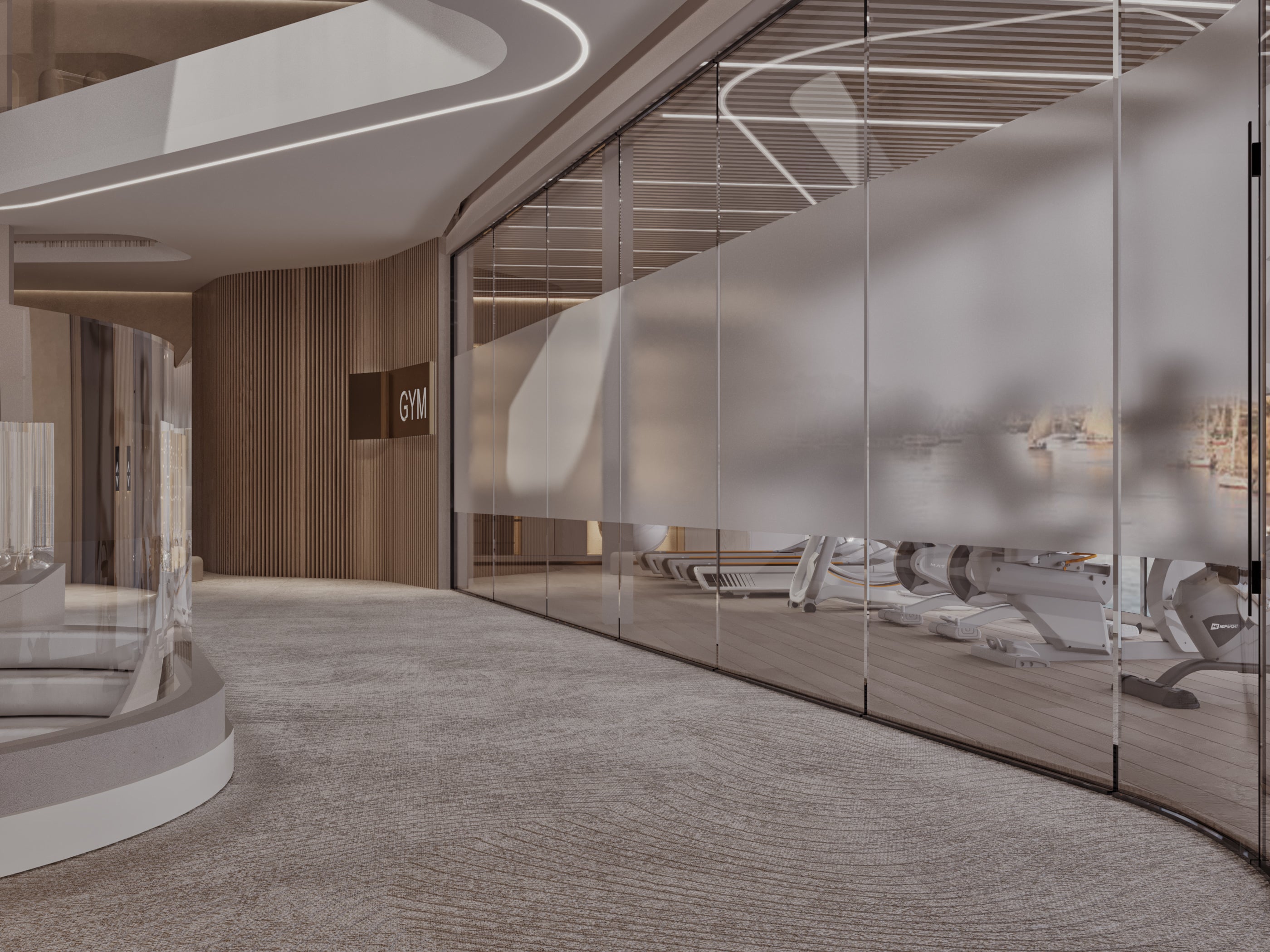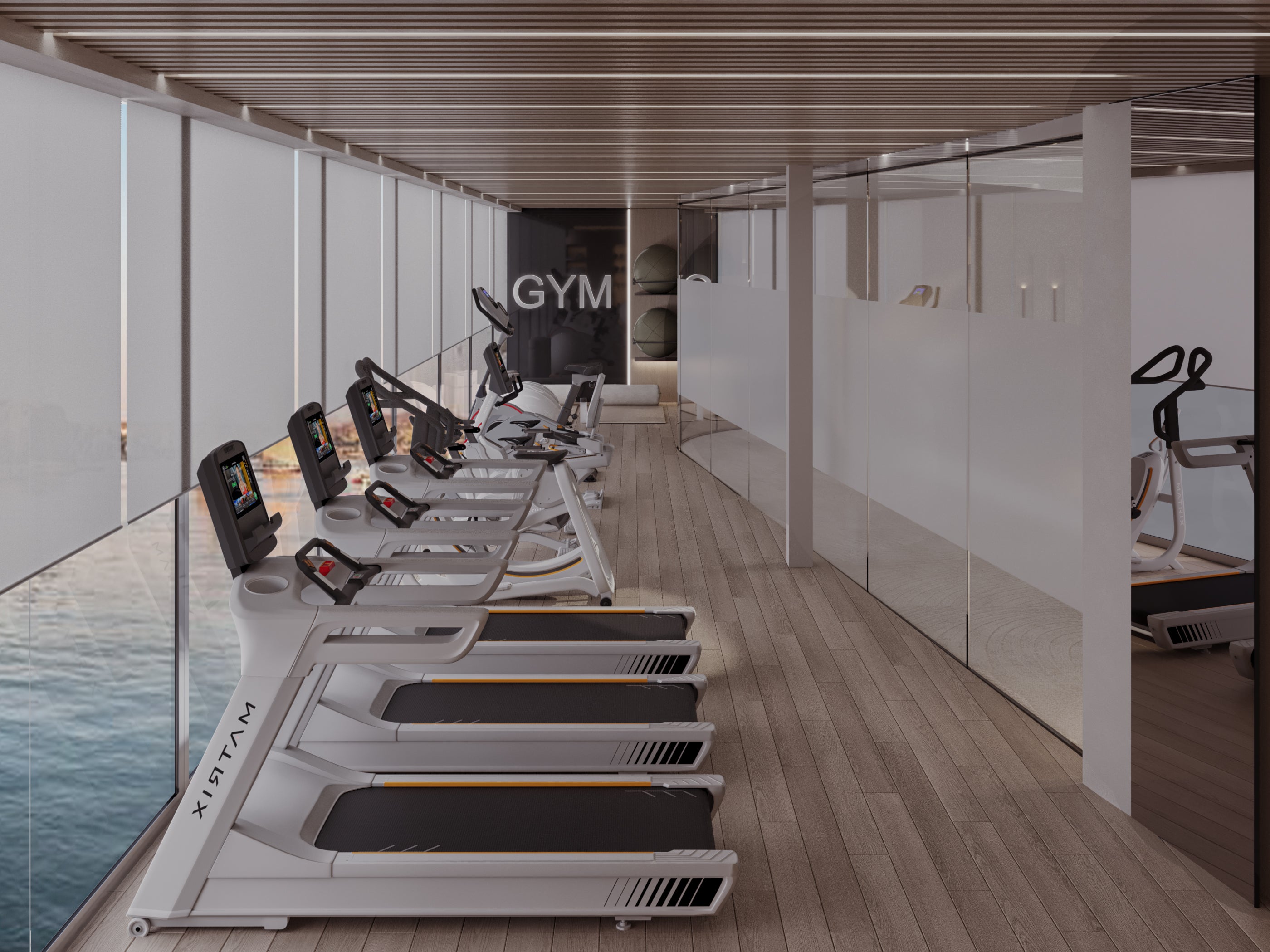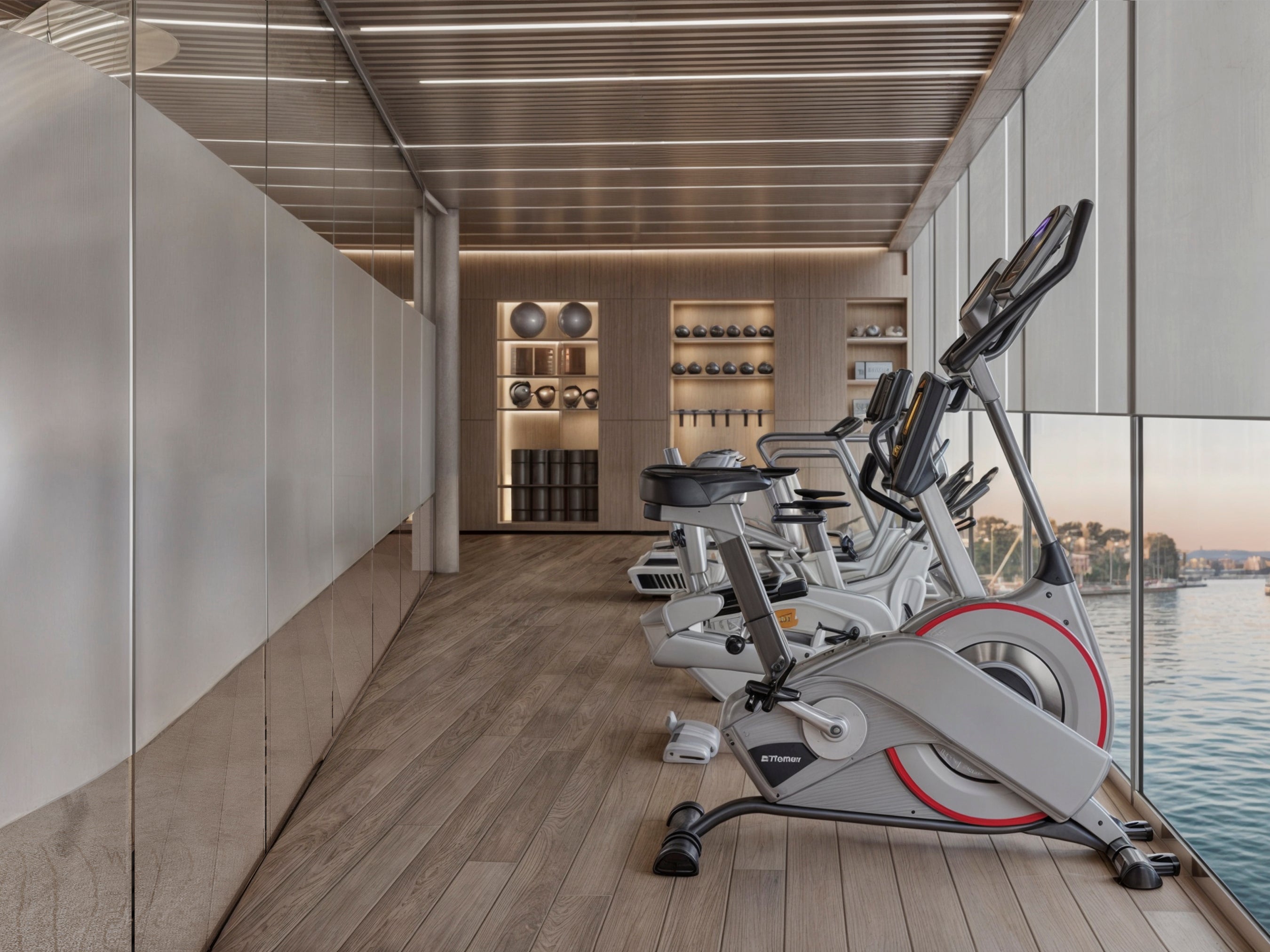 Flooded with natural light and surrounded by uninterrupted river views, the Gym on The Cruise by Farah brings a sense of calm to every workout. The environment is refined, airy, and thoughtfully arranged, creating a setting where your body feels energized and your mind stays clear.